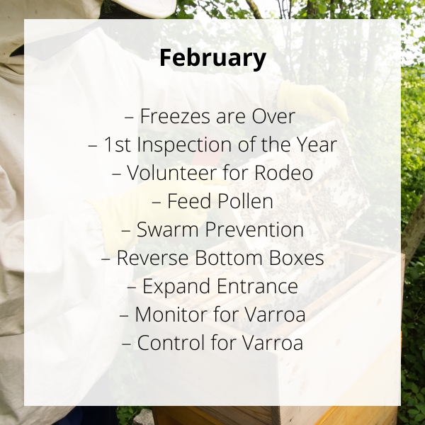 Also, Harris County Beekeepers Association will be attending our February meeting with the Rodeo sign-up sheet. Don't forget to sign up for your shift(s) with the HLSR Bee Booth!